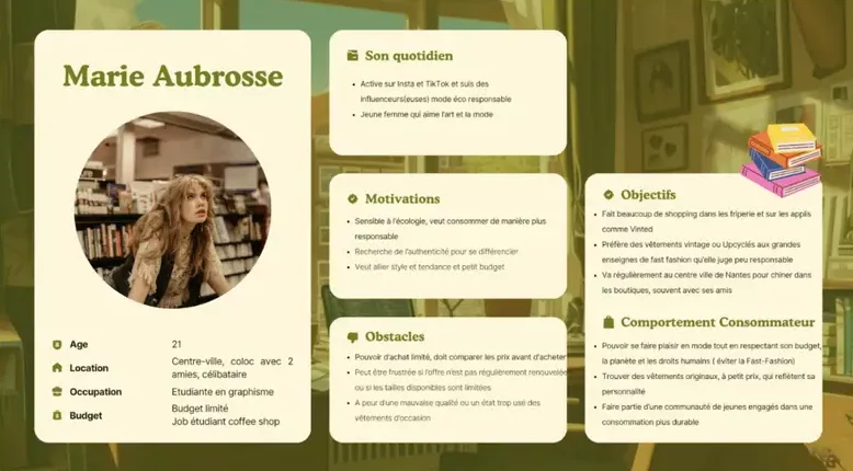 Dans le cadre d’un projet de communication, j’ai travaillé sur la création d’une stratégie marketing pour une friperie afin de renforcer sa notoriété et développer son image autour de la mode durable.